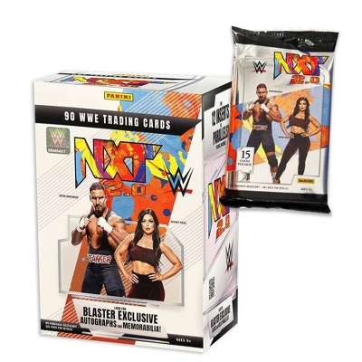 Panini presents the 2022 WWE NXT 2.0 blaster box! Each box contains 6 packs per box with 15 cards per pack! That is a total of 90 WWE trading cards! Be on the look out for blaster exclusive Autographs and Memorabilia! Each box may contain 12 Inserts or Parallels!
