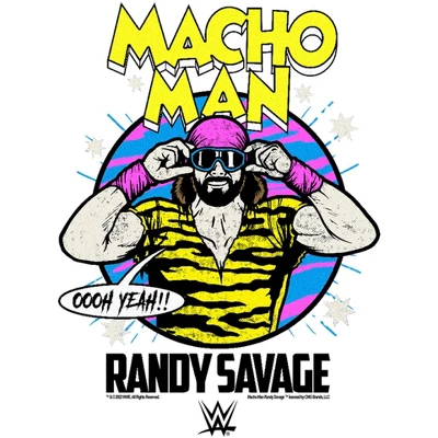 Show your love for all things wrestling with exciting new apparel for the whole family celebrating your favorite entertainers from the past and present from WWE! This Men’s WWE Macho Man Randy Savage Oooh Yeah Retro Graphic T-Shirt features a colorful graphic of Randy Savage grabbing his glasses and a bubble text that reads: “Oh Yeah.” Grab some WWE gear today and show up to your next live event in style!